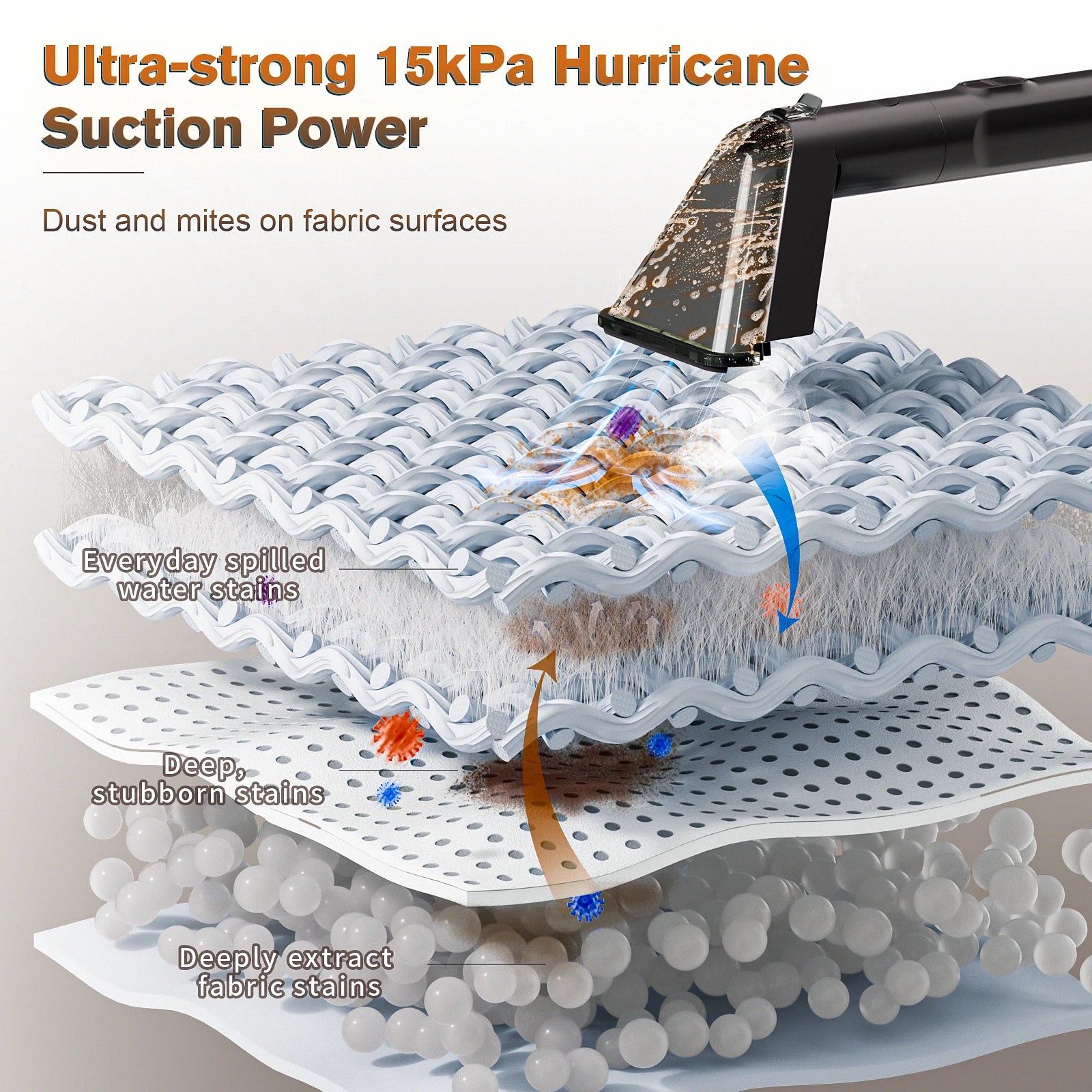 π 1650W High Power & 6000Pa Strong Suction β Deep cleans carpets, upholstery, hardwood floors, and more with ease! The steam-vac 2-in-1 function sanitizes while removing stubborn dirt, dust mites, and stains.