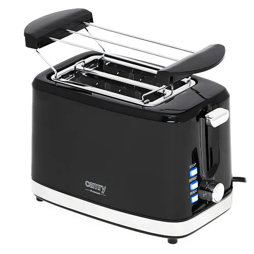 Efficient toaster with a maximum power of 900W. It can be used to prepare two toasts at the same time. Regulation of the toasting power allows you to prepare the toast in your favorite way. This makes them exactly as crispy as they should be. The crumb tray makes it easy to keep the device and the food preparation area clean. During operation of the device, the housing remains cool, which increases the safety of use. You can stop toasting at any time with the STOP button. In addition, the toaster has a grate for heating rolls, which increases its functionality and functions of heating and defrosting bread.